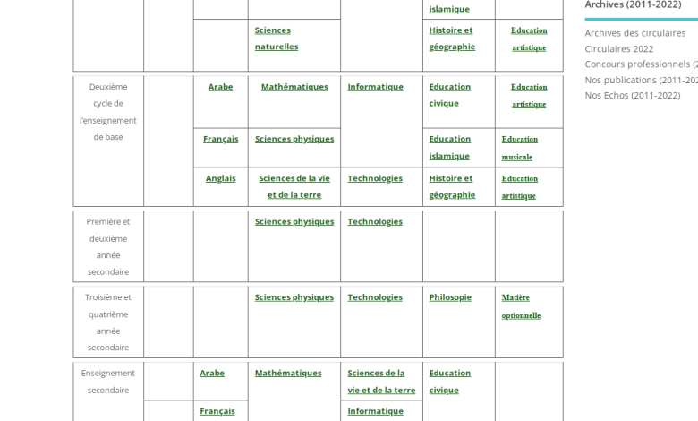 Programmes Officiels – Ministère de l’éducation Tunisie